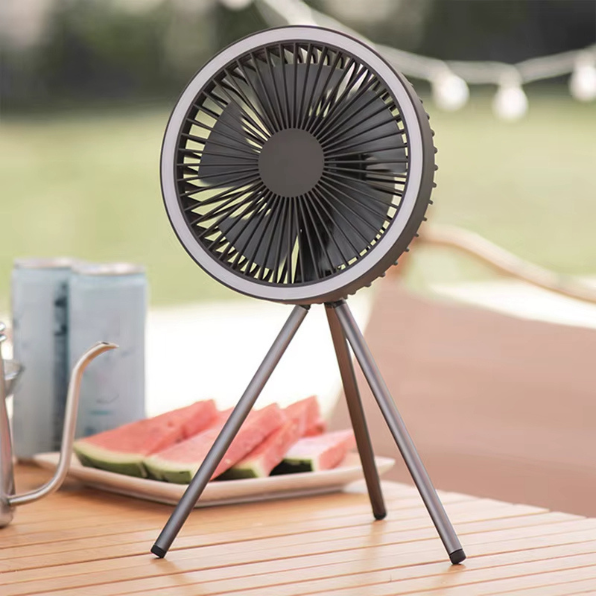 Whether camping, on the balcony, or at a picnic – this clever companion combines a powerful fan and LED lighting in one compact device.