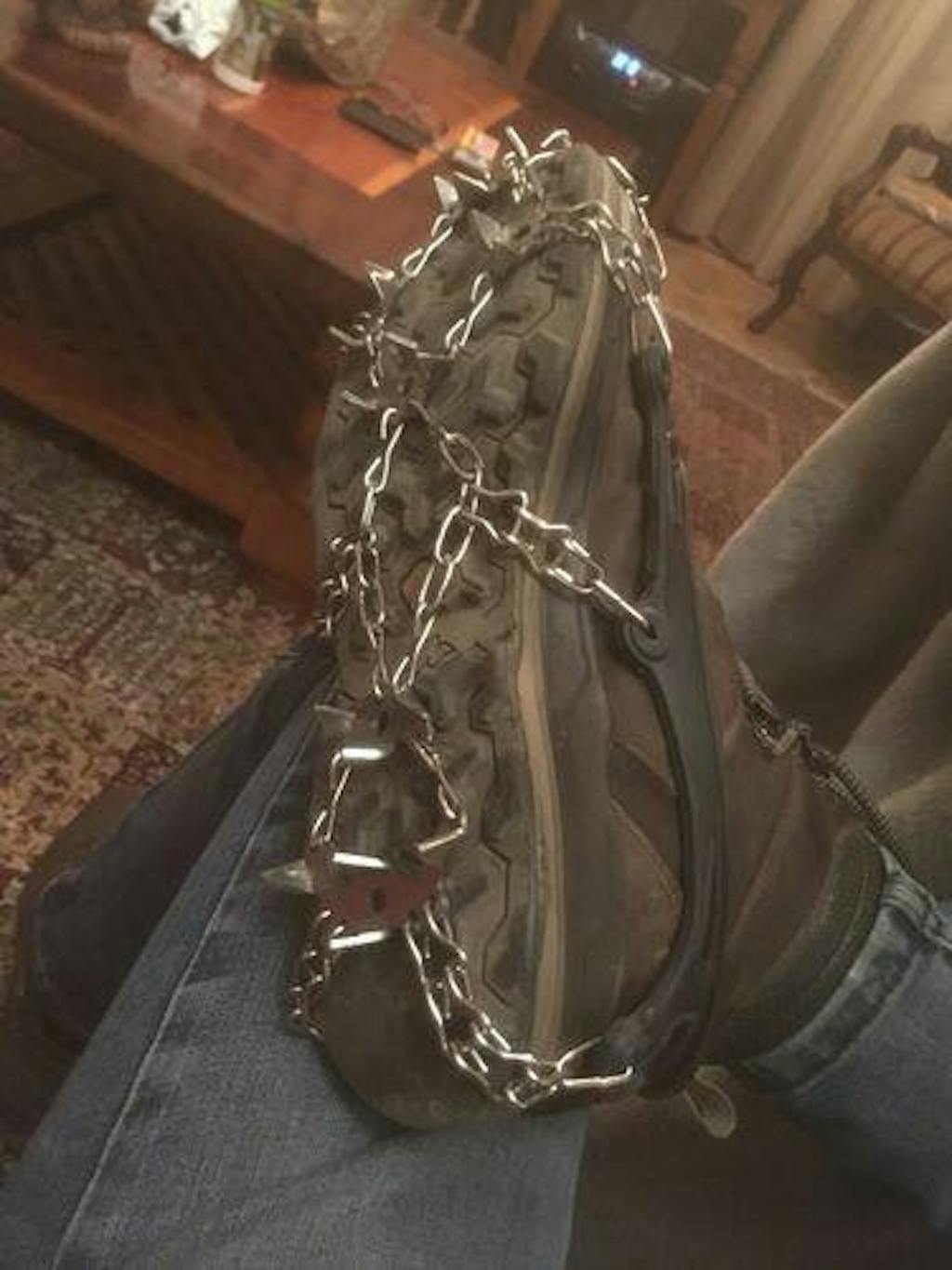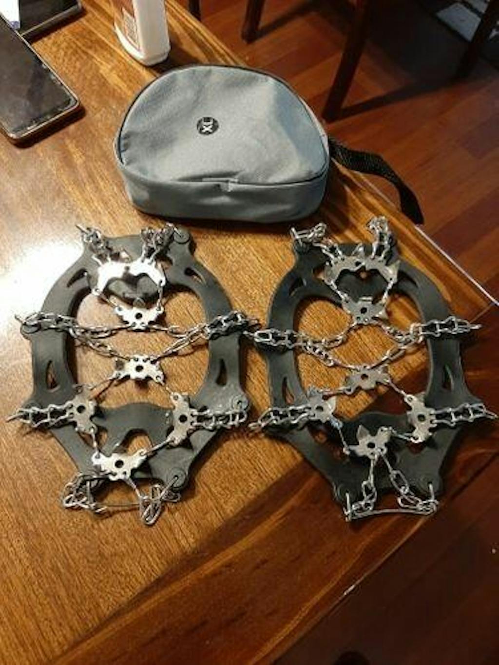 The NaturVibes crampons provide secure traction on ice, snow, mud, wet grass, and slippery trails.
