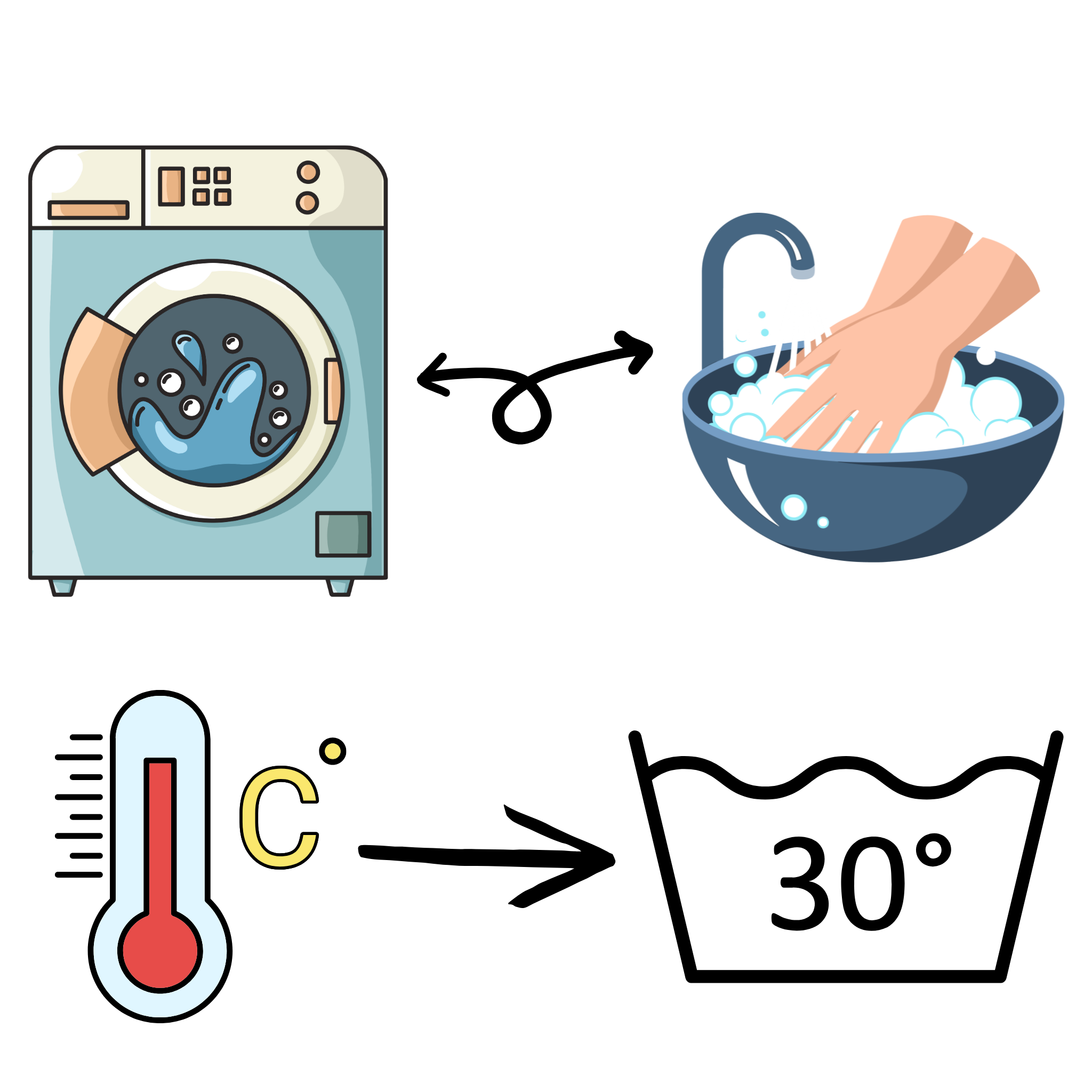 For cleaning, simply hand-wash or machine-wash at max 86°F.