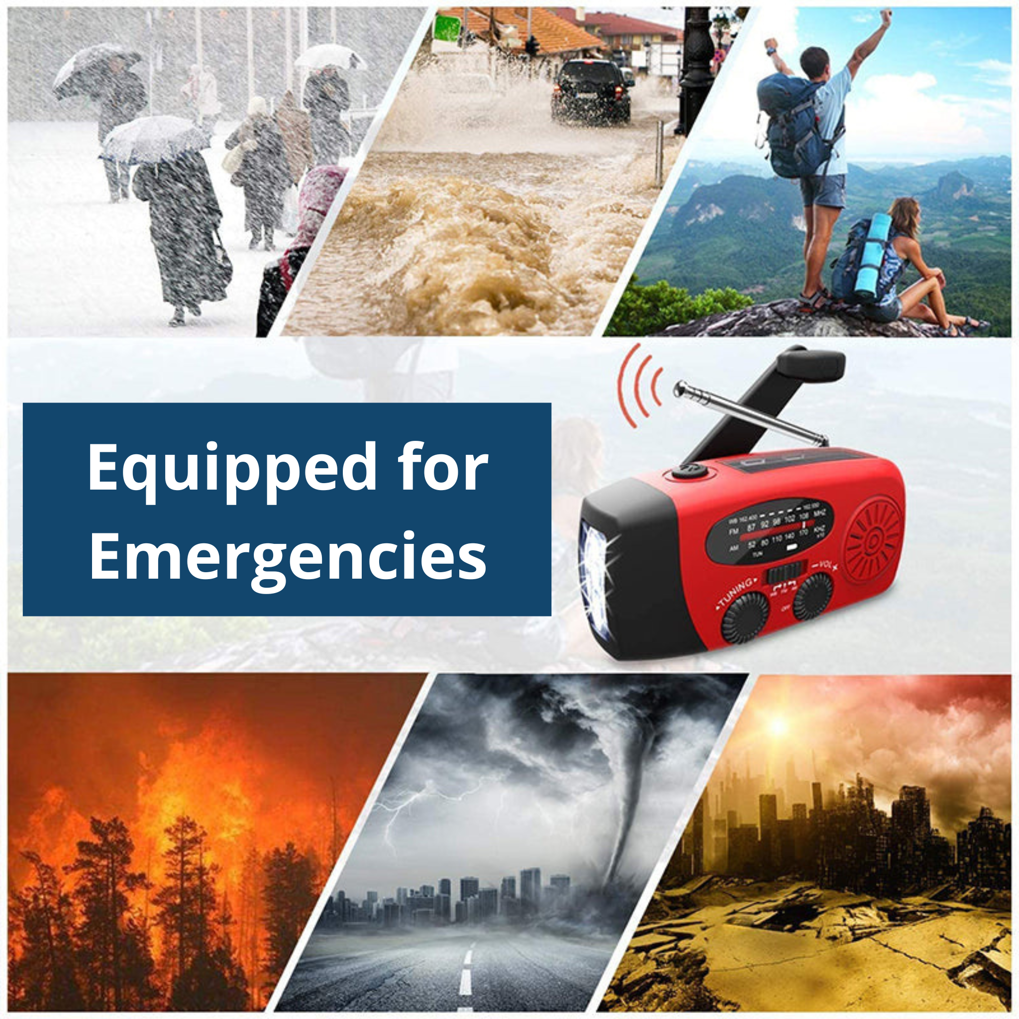 That’s exactly why we developed the NaturVibes Power-Safe PRO! With it, you can generate your own power, listen to the radio, and have an integrated LED flashlight. Stay safe in everyday life, camping, hiking... wherever you are!