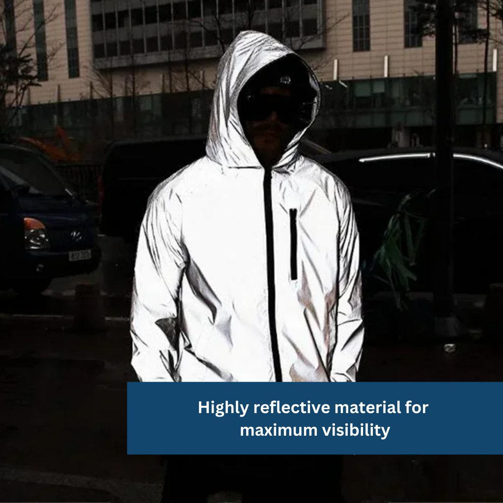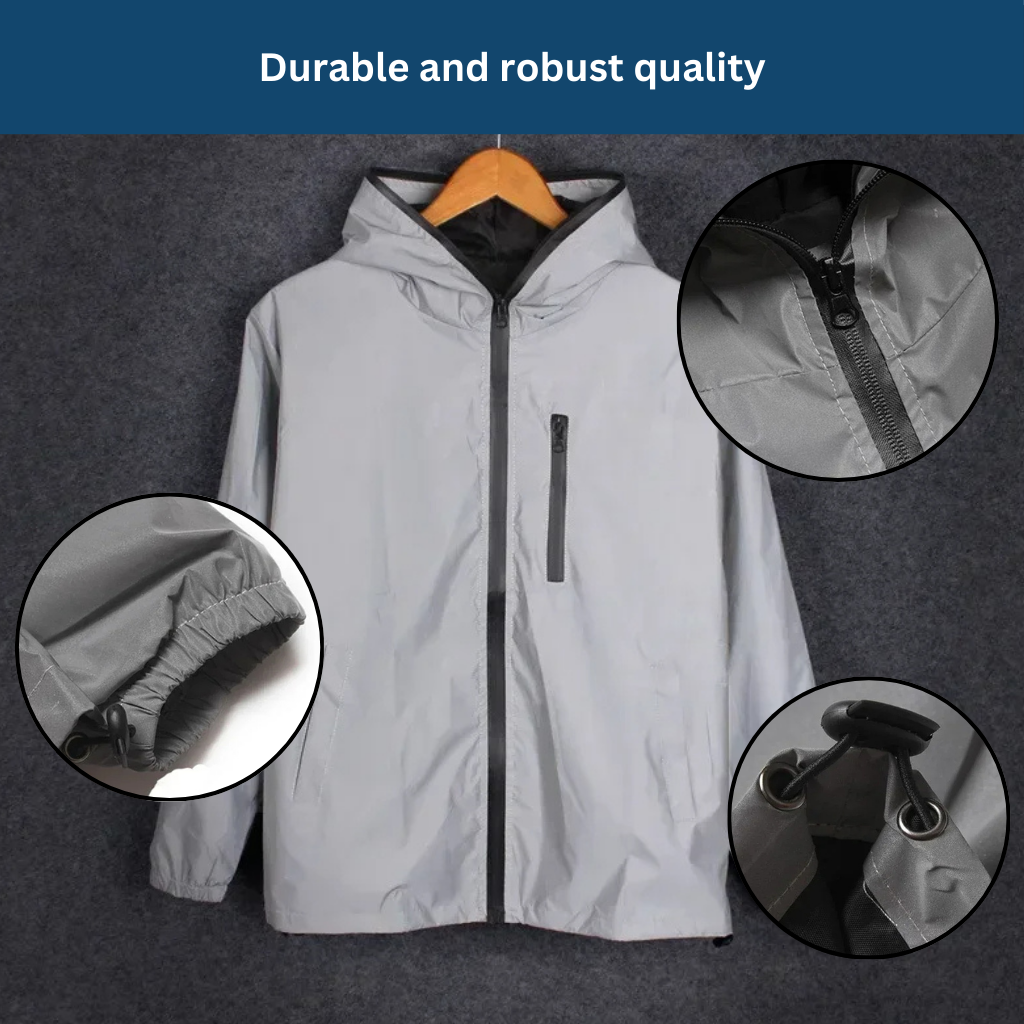 Experience maximum safety and visibility in any weather with our Reflect Rain Jacket.